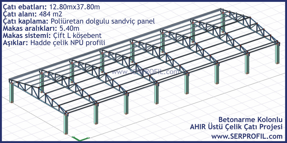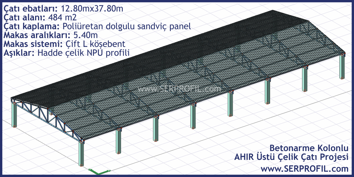 Betonarme Kolonlu Ahır Üzeri Köşebent Makas Sistemli Çelik Konstrüksiyon Çatı Projesi