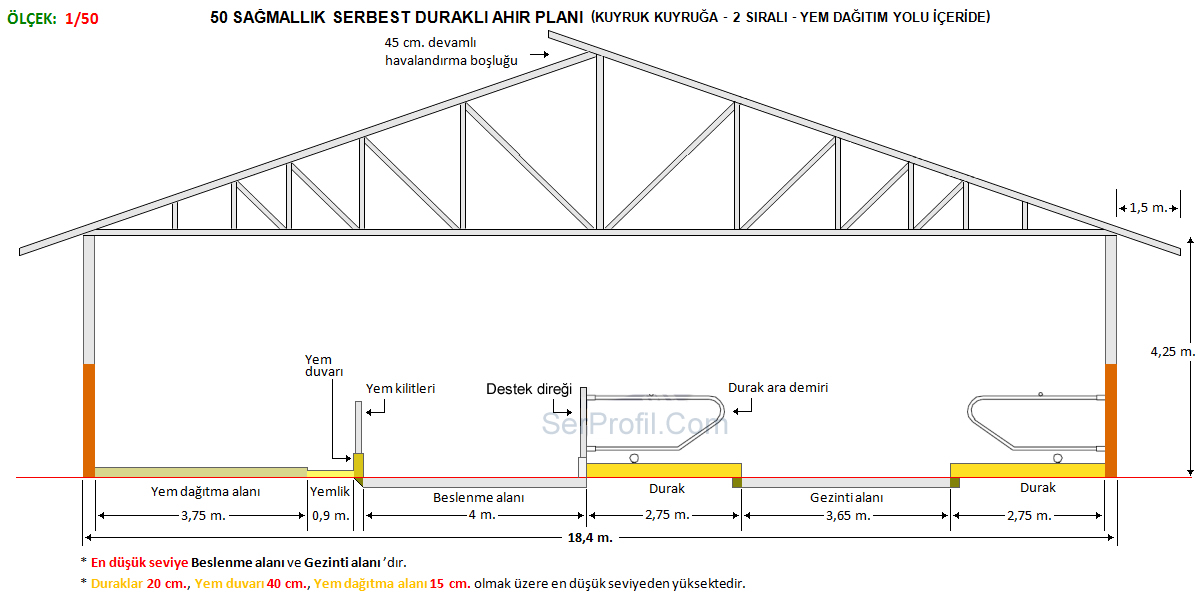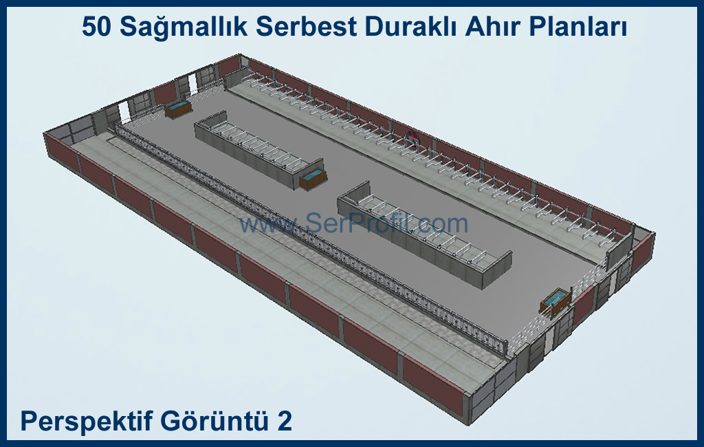 50 Sağmallık Serbest Duraklı Ahır Planları