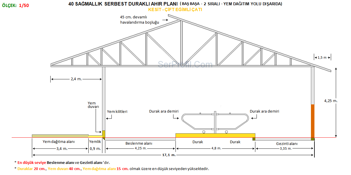 40 Sağmallık Serbest Duraklı Ahır Planları