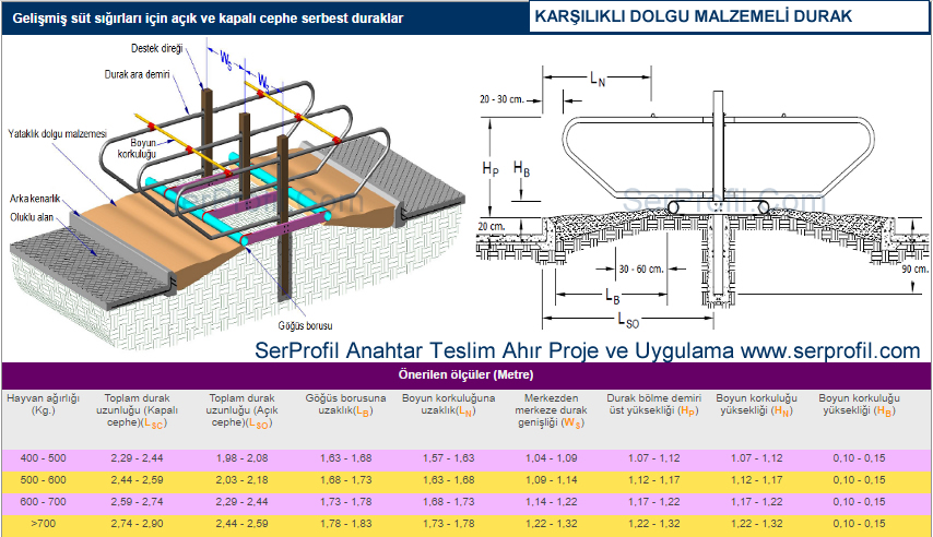 Karşılıklı dolgu malzemeli durak / Sağmal Ahır Durak Detayı