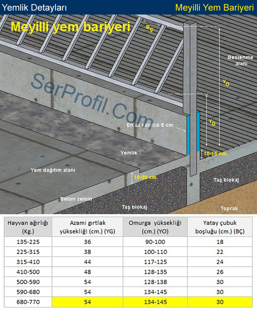 Büyükbaş Hayvancılık - Yemlik Detayları / Meyilli Yemlik (Yem Bariyeri)