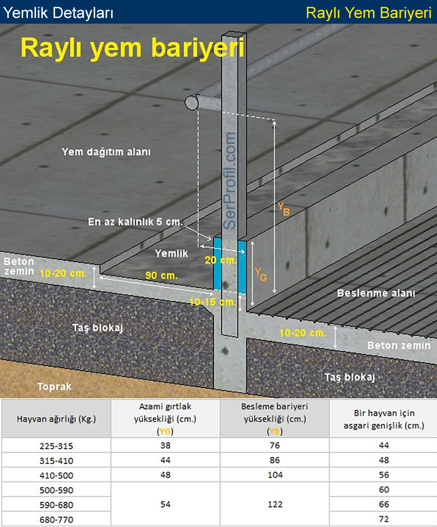 Büyükbaş Hayvancılık - Yemlik Detayları / Raylı Yemlik (Yem Bariyeri)